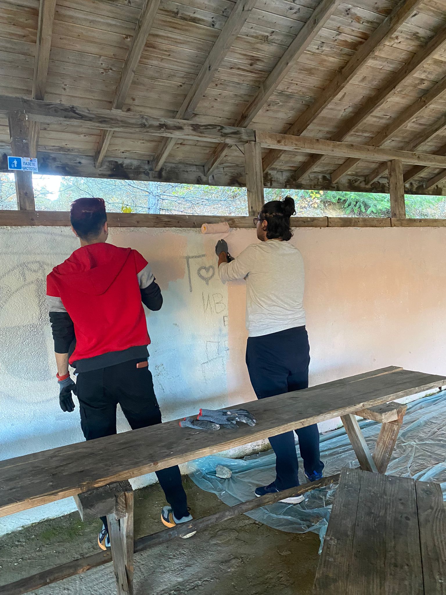На 21.10.2021 г.  част доброволците от Република Турция и Република България- група 1  по проект №2021-1-BG01-ESC51-VTJ-000037391  „ Unlimited solidarity „  започнаха изпълнението на доброволчески дейности свързани с подобряване на жизнената среда на населението: почистване и възстановяване на достъпни места за отдих, поставяне на табели „Пазете чистота“, като почистиха и пребоядисаха масивна беседка по пътя за хижа „Рай“.