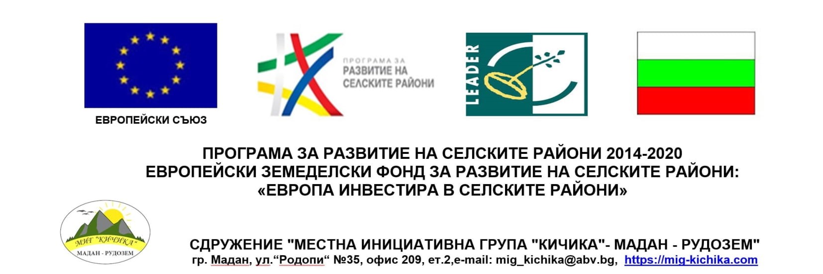 Административен договор № РД 50-46 от 06.10.2022г., № в ИСУН 2020: BG06RDNP001-19.476-0010-C01, за реализация на проект: “Проучване и популяризиране на местната идентичност на територията на МИГ „КИЧИКА” – МАДАН – РУДОЗЕМ и въвеждане на иновации за устойчиво развитие“, финансиран по Програма за развитие на селските райони за периода 2014 – 2020г., съфинансирана от Европейския земеделски фонд за развитие на селските райони (ЕЗФРСР)