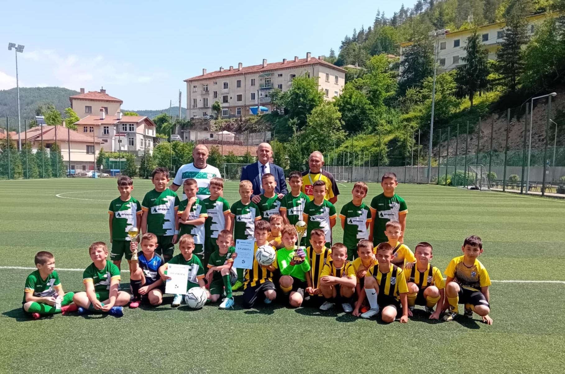 Двата отбора получиха топки, купи и грамоти от името на кмета на община Мадан.