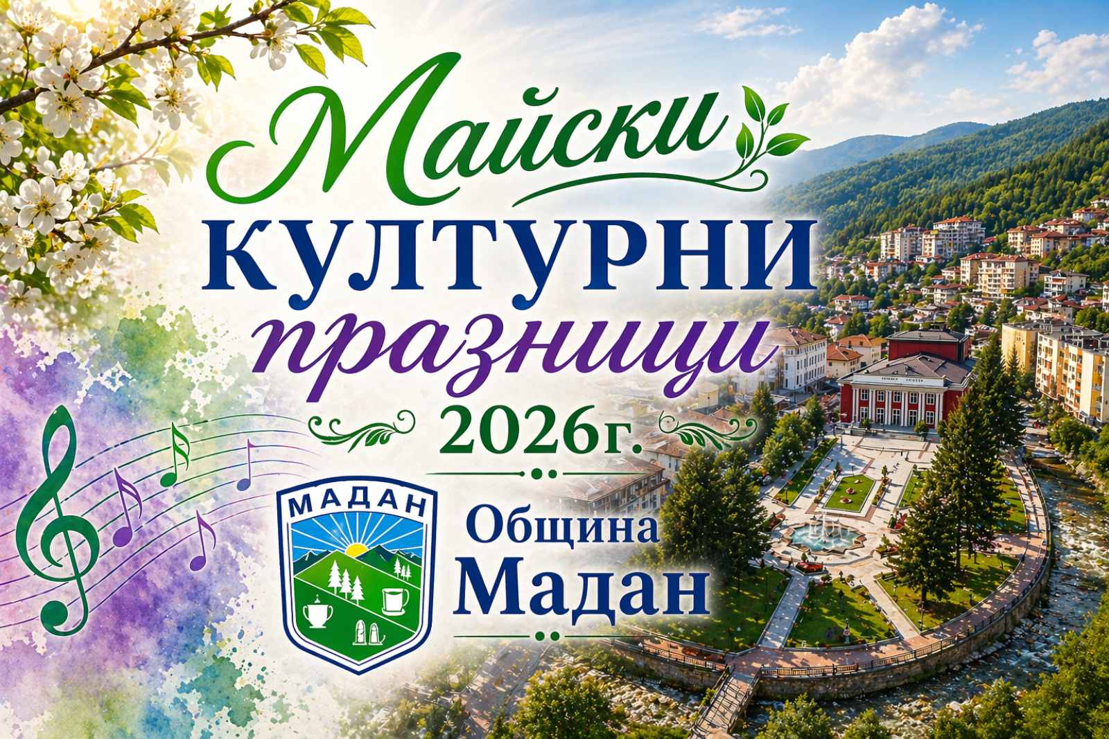 Мероприятия Място на провеждане Час 8 май (петък)  „Единство в многообразието“ – изложба на школата по изобразително изкуство НЧ „Иван Вазов-1999“ гр. Мадан 10.00часа 12 май (вторник) Награждаване „Читател на годината” на ГБ „Антон Страшимиров” Градска библиотека „Антон Страшимиров” 14.00 часа 24 май (неделя)  Празнична програма с участието на: НЧ „Иван Вазов - 1999” гр. Мадан; ПГ „Васил Димитров” гр. Мадан; СУ „Отец Паисий” гр. Мадан Награждаване на изявени дейци на просветата Тържествено изпращане на  абитуриентите  ВИПУСK 2026  Награждаване на зрелостниците с...